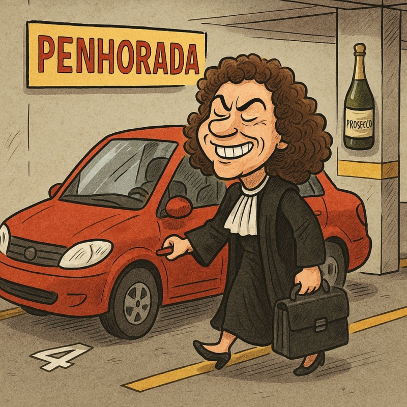 A vaga era da devedora — que, por ironia do destino, se chamava Mercedes e gritava aos quatro ventos: “Pode até tentar penhorar a minha vaga, mas quero ver vocês enfrentarem a minha fúria, já que é meu bem de família, meu único patrimônio.”